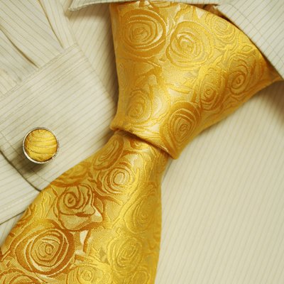 The Detailed Description of Gold Flowers Ties for Men Yellow Florals Pattern Xmas Gift Mens Style Silk Ties Cufflinks Set A2050 One Size GoldFeatures