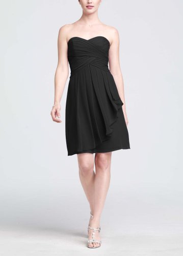 The Detailed Description of David's Bridal Bridesmaid Dresses Short Crinkle Chiffon Dress with Front Cascade Style F14847, Black, 20