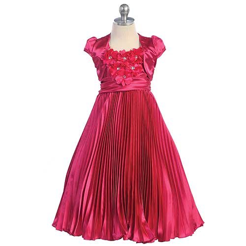 The Detailed Description of Chic Baby Girls 12 Fuchsia Ruffle Top Pleated Skirt Bolero DressFeatures