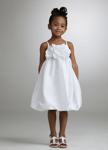 Your flower girl with light up the room walking down the aisle in this precious empire bubble dress! Taffeta empire waist bubble dress features oversized floral detail on bodice. Fully lined. Invisible back zipper. Imported polyester. Dry clean only.