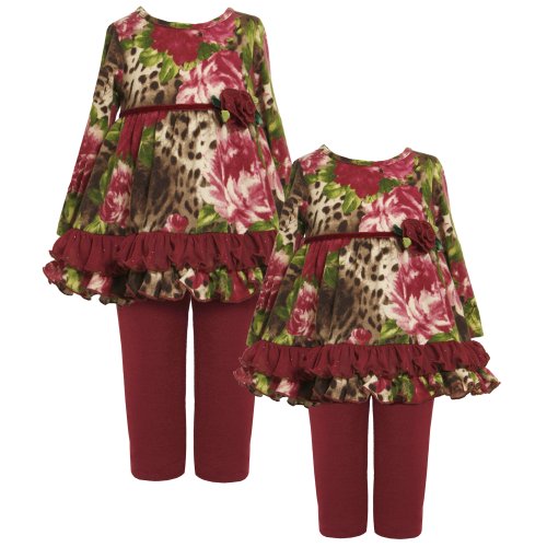 The Detailed Description of Size-6X BNJ-2144B 2-Piece BURGUNDY-RED BROWN GREEN Floral Animal Print Fuzzy Knit Dress/Legging Set,B32144 Bonnie Jean LITTLE GIRLSFeatures