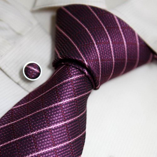 The Detailed Description of Purple Checkers Men in Suits and Ties Handmade Mens Accessories Silk Neck Ties Cufflinks Set 8103Features