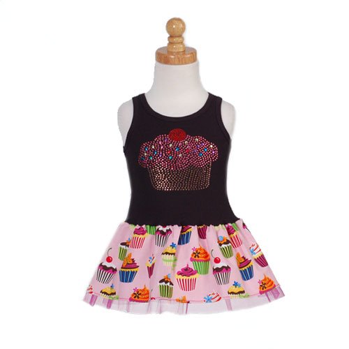 The Detailed Description of Little Girl Pink Black Rhinestone Cupcake Birthday Tank Dress 18M