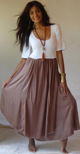 The Detailed Description of WHITE TAUPE DRESS MAXI LAYERED STRETCHED - FITS (ONE SIZE) - L 1X 2X - B182S LOTUSTRADERSFeatures